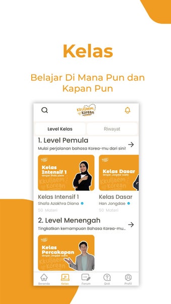 You can learn Korean through a series of lessons that are organized into different levels, each one with its own difficulty level.